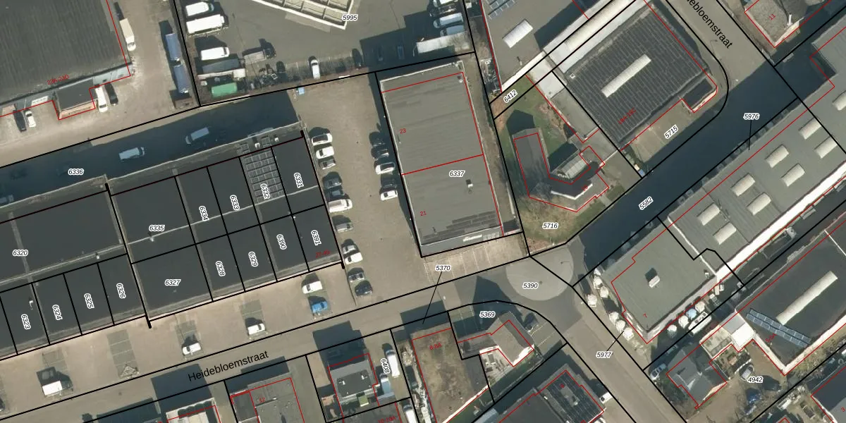 Heidebloemstraat 21 is gelegen op kadastraal perceel SDL00A6337. Deze kadastrale aanduiding is uniek en wordt gebruikt door het Kadaster om eigendomsrechten en andere zakelijke rechten vast te leggen. Het perceel maakt onderdeel uit van de kadastrale gemeente Schijndel.