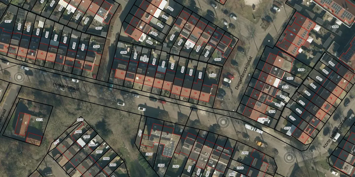 Heikantstraat 72 is gelegen op kadastraal perceel SDL00G3052. Deze kadastrale aanduiding is uniek en wordt gebruikt door het Kadaster om eigendomsrechten en andere zakelijke rechten vast te leggen. Het perceel maakt onderdeel uit van de kadastrale gemeente Schijndel.