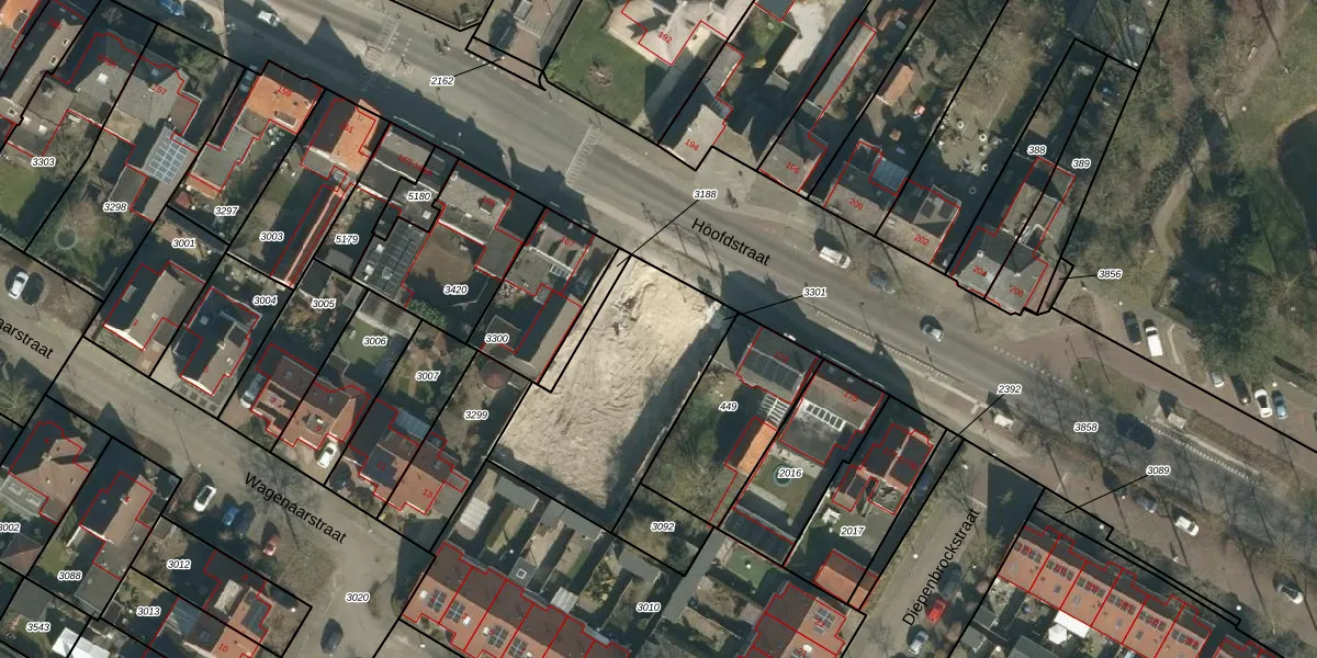 Het perceel waarop Hoofdstraat 169-D staat heeft een oppervlakte van 758 m². Dit is een groot perceel. De perceeloppervlakte wordt geregistreerd door het Kadaster. Gedetailleerde informatie over de maten van dit perceel kunt u vinden in het rapport Kadastrale kaart met maatvoering van Hoofdstraat 169-D.
