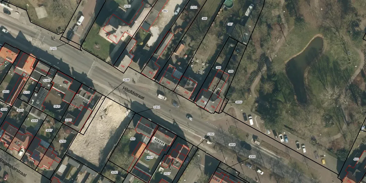Het perceel waarop Hoofdstraat 202 staat heeft een oppervlakte van 1210 m². Dit is een zeer groot perceel. De perceeloppervlakte wordt geregistreerd door het Kadaster. Gedetailleerde informatie over de maten van dit perceel kunt u vinden in het rapport Kadastrale kaart met maatvoering van Hoofdstraat 202.