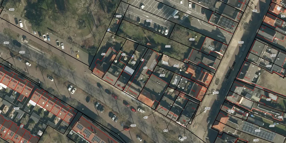 Het perceel waarop Hoofdstraat 222-B staat heeft een oppervlakte van 406 m². Dit is een groot perceel. De perceeloppervlakte wordt geregistreerd door het Kadaster. Gedetailleerde informatie over de maten van dit perceel kunt u vinden in het rapport Kadastrale kaart met maatvoering van Hoofdstraat 222-B.