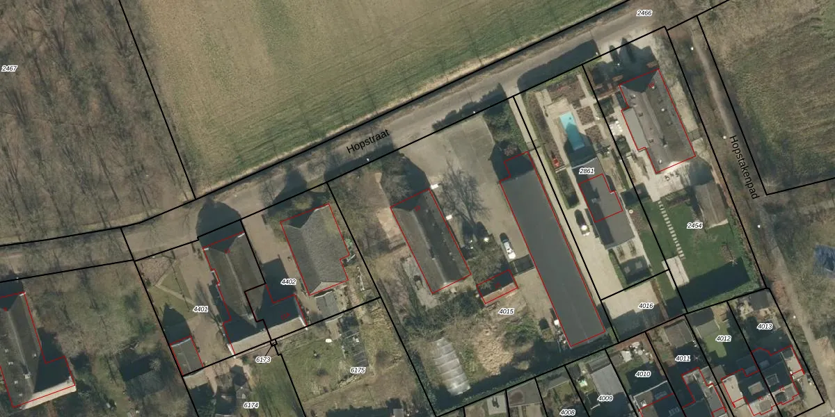 Het perceel waarop Hopstraat 13 staat heeft een oppervlakte van 3035 m². Dit is een zeer groot perceel. De perceeloppervlakte wordt geregistreerd door het Kadaster. Gedetailleerde informatie over de maten van dit perceel kunt u vinden in het rapport Kadastrale kaart met maatvoering van Hopstraat 13.