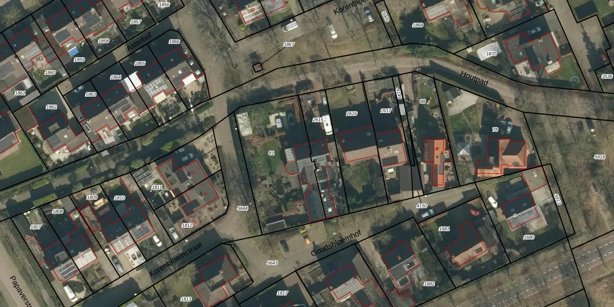 Het perceel waarop Houtpad 2 staat heeft een oppervlakte van 900 m². Dit is een groot perceel. De perceeloppervlakte wordt geregistreerd door het Kadaster. Gedetailleerde informatie over de maten van dit perceel kunt u vinden in het rapport Kadastrale kaart met maatvoering van Houtpad 2.