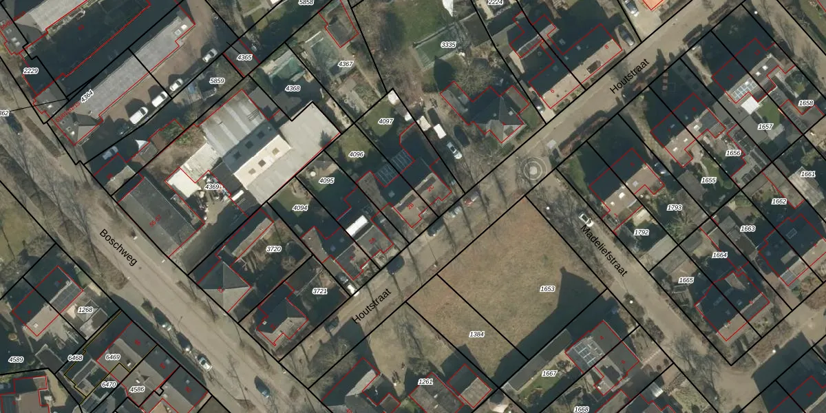 Houtstraat 2-B is gelegen op kadastraal perceel SDL00H4096. Deze kadastrale aanduiding is uniek en wordt gebruikt door het Kadaster om eigendomsrechten en andere zakelijke rechten vast te leggen. Het perceel maakt onderdeel uit van de kadastrale gemeente Schijndel.