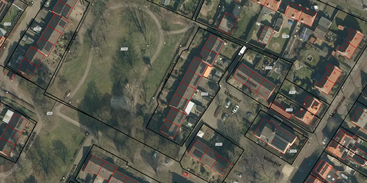 Het perceel waarop Jansenpark 12 staat heeft een oppervlakte van 1586 m². Dit is een zeer groot perceel. De perceeloppervlakte wordt geregistreerd door het Kadaster. Gedetailleerde informatie over de maten van dit perceel kunt u vinden in het rapport Kadastrale kaart met maatvoering van Jansenpark 12.