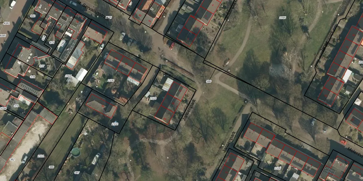 Jansenpark 21 is gelegen op kadastraal perceel SDL00G2103. Deze kadastrale aanduiding is uniek en wordt gebruikt door het Kadaster om eigendomsrechten en andere zakelijke rechten vast te leggen. Het perceel maakt onderdeel uit van de kadastrale gemeente Schijndel.