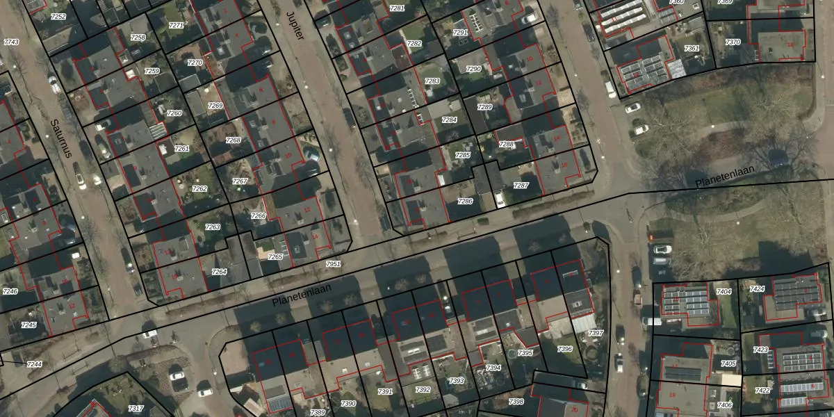 Gebruik de zoekbalk of klik op een perceel voor informatie over de adressen binnen dit perceel.