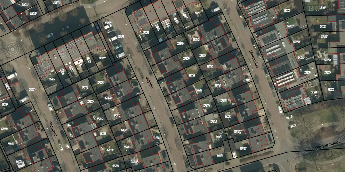 Het perceel waarop Jupiter 7 staat heeft een oppervlakte van 256 m². Dit is een middelgroot perceel. De perceeloppervlakte wordt geregistreerd door het Kadaster. Gedetailleerde informatie over de maten van dit perceel kunt u vinden in het rapport Kadastrale kaart met maatvoering van Jupiter 7.