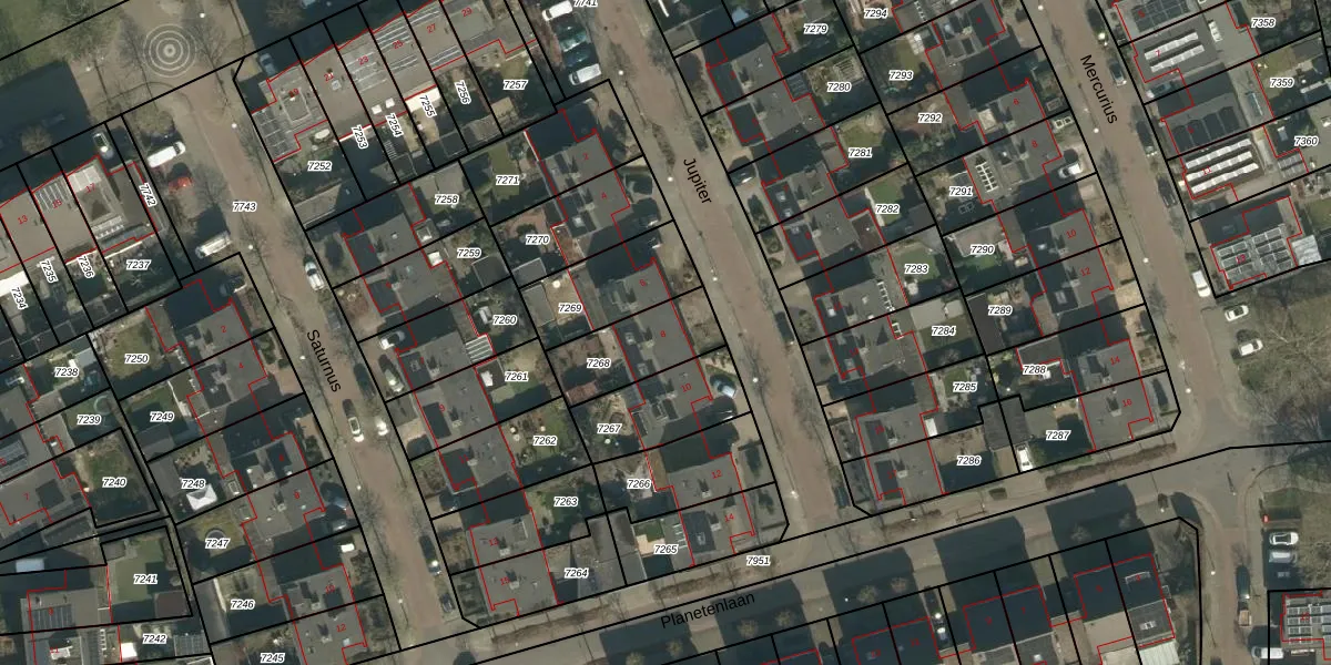 Het perceel waarop Jupiter 8 staat heeft een oppervlakte van 242 m². Dit is een middelgroot perceel. De perceeloppervlakte wordt geregistreerd door het Kadaster. Gedetailleerde informatie over de maten van dit perceel kunt u vinden in het rapport Kadastrale kaart met maatvoering van Jupiter 8.