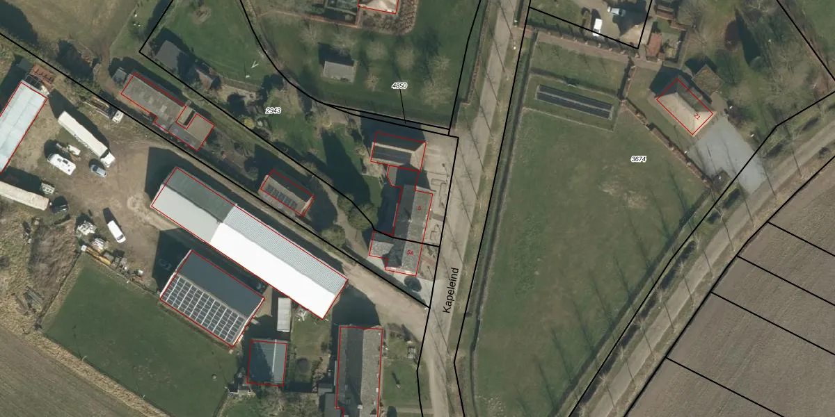 Kapeleind 5 is gelegen op kadastraal perceel SDL00G2943. Deze kadastrale aanduiding is uniek en wordt gebruikt door het Kadaster om eigendomsrechten en andere zakelijke rechten vast te leggen. Het perceel maakt onderdeel uit van de kadastrale gemeente Schijndel.