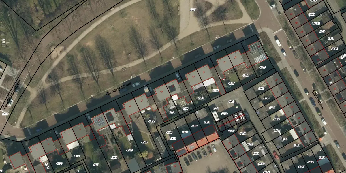 Het perceel waarop Kastanjestraat 21 staat heeft een oppervlakte van 238 m². Dit is een middelgroot perceel. De perceeloppervlakte wordt geregistreerd door het Kadaster. Gedetailleerde informatie over de maten van dit perceel kunt u vinden in het rapport Kadastrale kaart met maatvoering van Kastanjestraat 21.