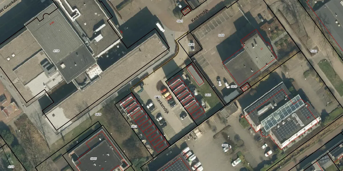 Kerkendijk 57-01 is gelegen op kadastraal perceel SDL00H6431. Deze kadastrale aanduiding is uniek en wordt gebruikt door het Kadaster om eigendomsrechten en andere zakelijke rechten vast te leggen. Het perceel maakt onderdeel uit van de kadastrale gemeente Schijndel.