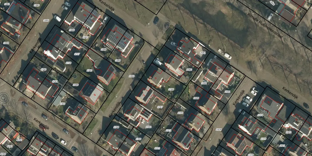 Het perceel waarop Kerkendijk 76 staat heeft een oppervlakte van 365 m². Dit is een groot perceel. De perceeloppervlakte wordt geregistreerd door het Kadaster. Gedetailleerde informatie over de maten van dit perceel kunt u vinden in het rapport Kadastrale kaart met maatvoering van Kerkendijk 76.