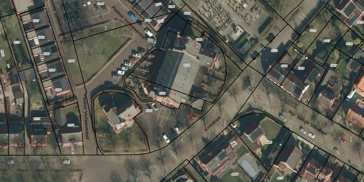 Kerkstraat 4-11 is gelegen op kadastraal perceel SDL00E6154. Deze kadastrale aanduiding is uniek en wordt gebruikt door het Kadaster om eigendomsrechten en andere zakelijke rechten vast te leggen. Het perceel maakt onderdeel uit van de kadastrale gemeente Schijndel.