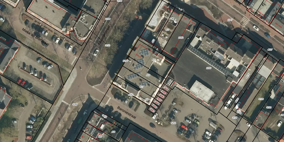Het perceel waarop het adres ligt is SDL00-G-416. De afkorting 'SDL00' staat voor kadastrale gemeente Schijndel. Het perceel is kleiner dan gemiddeld in Schijndel. Het perceel is 245 m² groot, terwijl het gemiddelde ligt op 2928,71 m². De grootste perceeloppervlakte in de kadastrale gemeente is 41,5 ha. De kleinste oppervlakte bedraagt 0 m². Er zijn 18 adressen aanwezig op het perceel. De laatste wijziging in het de Basisregistratie Kadaster (BRK) was op 02-03-2007.