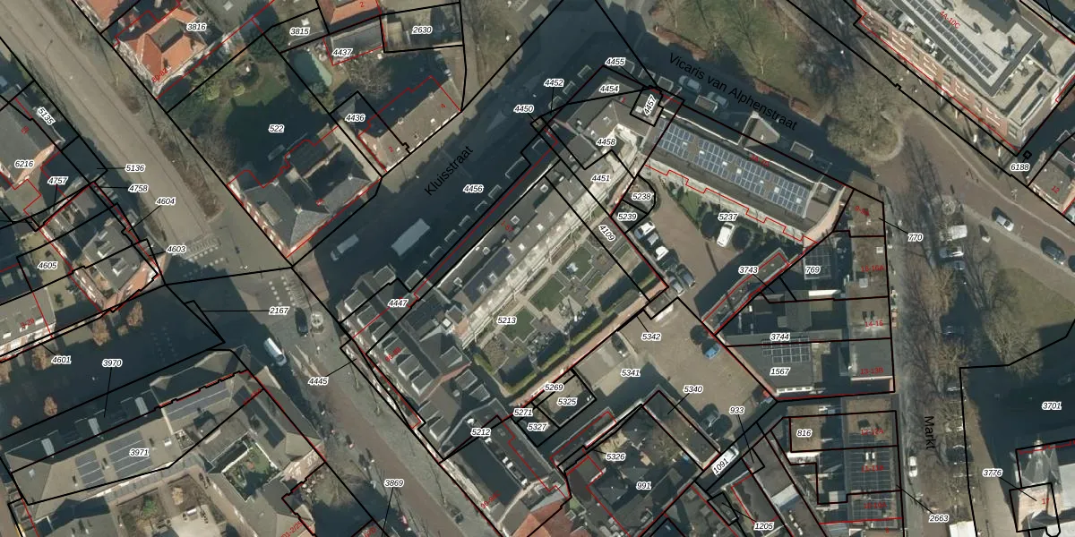 Kluisstraat 43 is gelegen op kadastraal perceel SDL00G5213. Deze kadastrale aanduiding is uniek en wordt gebruikt door het Kadaster om eigendomsrechten en andere zakelijke rechten vast te leggen. Het perceel maakt onderdeel uit van de kadastrale gemeente Schijndel.