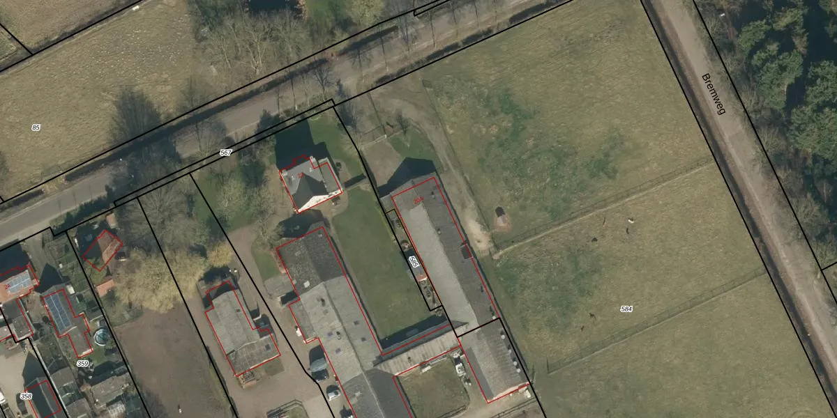 Het perceel waarop het adres ligt is SDL00-M-584. De afkorting 'SDL00' staat voor kadastrale gemeente Schijndel. De oppervlakte van het perceel is 1,0 ha. Dat is groter dan gemiddeld in Schijndel, waar de gemiddelde perceeloppervlakte op 2928,91 m² ligt. Het grootste perceel in de kadastrale gemeente is 41,5 ha. Het kleinste perceel heeft een oppervlakte van 0 m². Er zijn geen andere adressen aanwezig op het perceel. De huidige grenzen van het perceel zijn digitaal in de Basisregistratie Kadaster (BRK) geregistreerd op 22-01-2018.