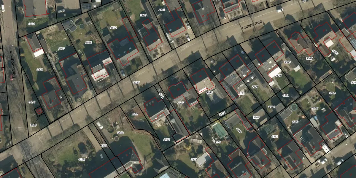 Het perceel waarop Lariestraat 13 staat heeft een oppervlakte van 518 m². Dit is een groot perceel. De perceeloppervlakte wordt geregistreerd door het Kadaster. Gedetailleerde informatie over de maten van dit perceel kunt u vinden in het rapport Kadastrale kaart met maatvoering van Lariestraat 13.