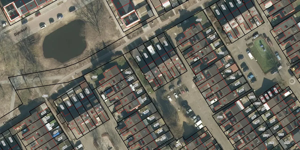 Het perceel waarop het adres ligt is SDL00-H-3878. De afkorting 'SDL00' staat voor kadastrale gemeente Schijndel. Het perceel is 166 m² groot. Dat is kleiner dan de gemiddelde perceeloppervlakte in Schijndel, dat op 2926,65 m² ligt. Het kleinste perceel in de kadastrale gemeente is 0 m² groot. De grootste perceeloppervlakte is 41,5 ha. Er zijn geen andere adressen aanwezig op het perceel. In de Basisregistratie Kadaster (BRK) werden de grenzen van het perceel geregistreerd op 24-10-2011.