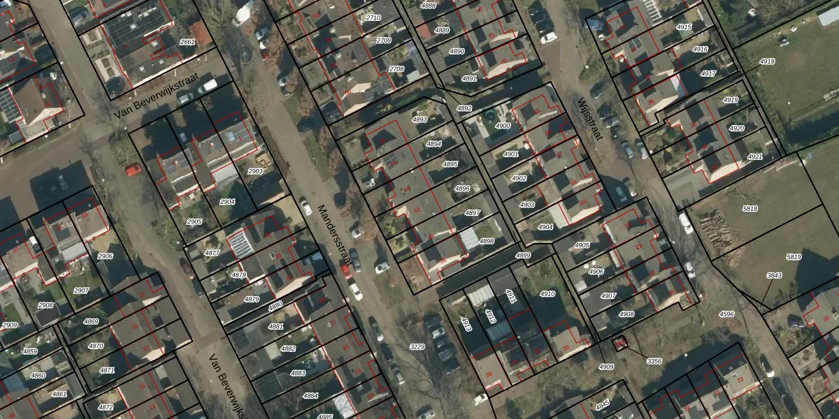 Mandersstraat 42 is gelegen op kadastraal perceel SDL00H4896. Deze kadastrale aanduiding is uniek en wordt gebruikt door het Kadaster om eigendomsrechten en andere zakelijke rechten vast te leggen. Het perceel maakt onderdeel uit van de kadastrale gemeente Schijndel.