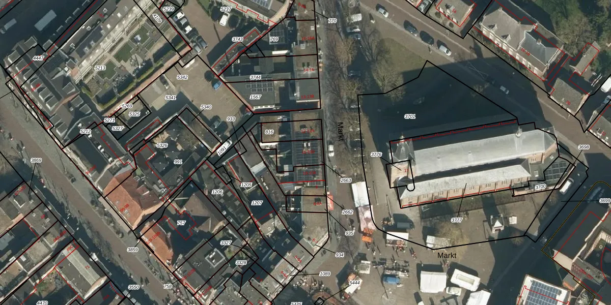 Het perceel waarop Markt 11 staat heeft een oppervlakte van 171 m². Dit is een middelgroot perceel. De perceeloppervlakte wordt geregistreerd door het Kadaster. Gedetailleerde informatie over de maten van dit perceel kunt u vinden in het rapport Kadastrale kaart met maatvoering van Markt 11.
