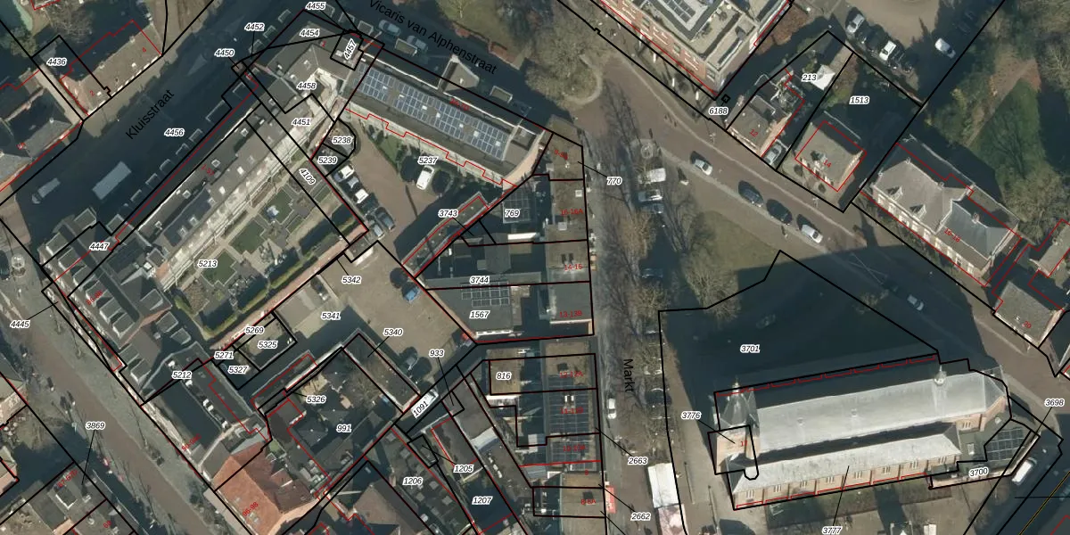 Het perceel waarop Markt 15 staat heeft een oppervlakte van 241 m². Dit is een middelgroot perceel. De perceeloppervlakte wordt geregistreerd door het Kadaster. Gedetailleerde informatie over de maten van dit perceel kunt u vinden in het rapport Kadastrale kaart met maatvoering van Markt 15.