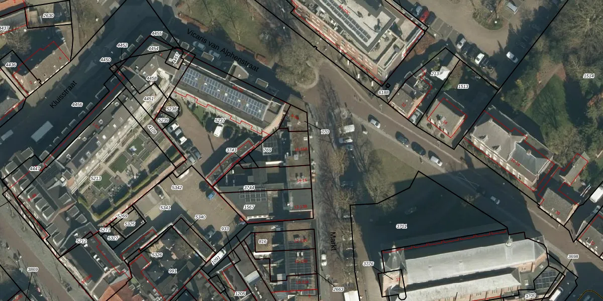 Het perceel waarop Markt 16 staat heeft een oppervlakte van 197 m². Dit is een middelgroot perceel. De perceeloppervlakte wordt geregistreerd door het Kadaster. Gedetailleerde informatie over de maten van dit perceel kunt u vinden in het rapport Kadastrale kaart met maatvoering van Markt 16.