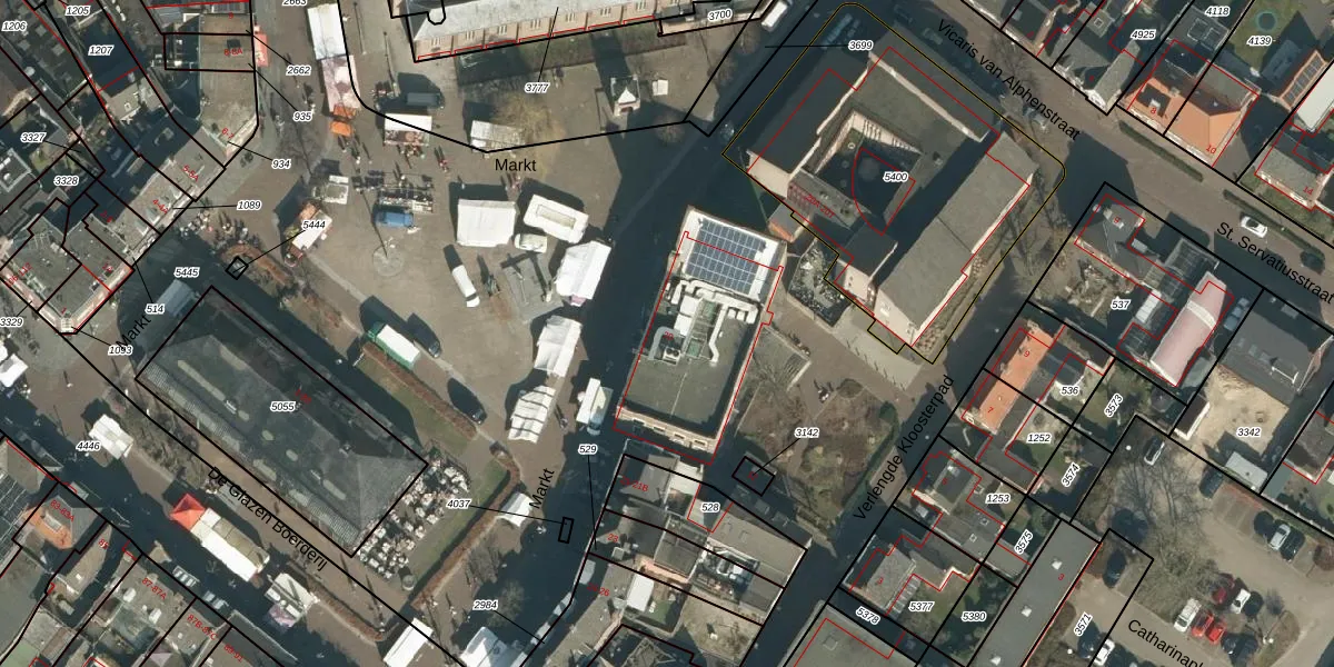Het perceel waarop Markt 20 staat heeft een oppervlakte van 1,2 ha. Dit is een zeer groot perceel. De perceeloppervlakte wordt geregistreerd door het Kadaster. Gedetailleerde informatie over de maten van dit perceel kunt u vinden in het rapport Kadastrale kaart met maatvoering van Markt 20.