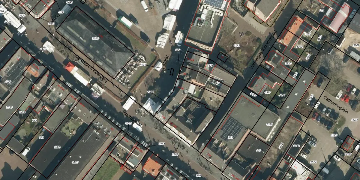 Het perceel waarop Markt 24 staat heeft een oppervlakte van 370 m². Dit is een groot perceel. De perceeloppervlakte wordt geregistreerd door het Kadaster. Gedetailleerde informatie over de maten van dit perceel kunt u vinden in het rapport Kadastrale kaart met maatvoering van Markt 24.