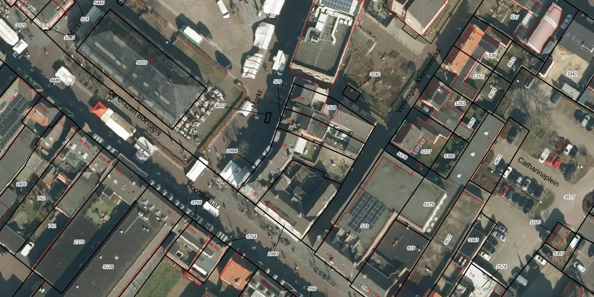 Het perceel waarop Markt 26 staat heeft een oppervlakte van 370 m². Dit is een groot perceel. De perceeloppervlakte wordt geregistreerd door het Kadaster. Gedetailleerde informatie over de maten van dit perceel kunt u vinden in het rapport Kadastrale kaart met maatvoering van Markt 26.