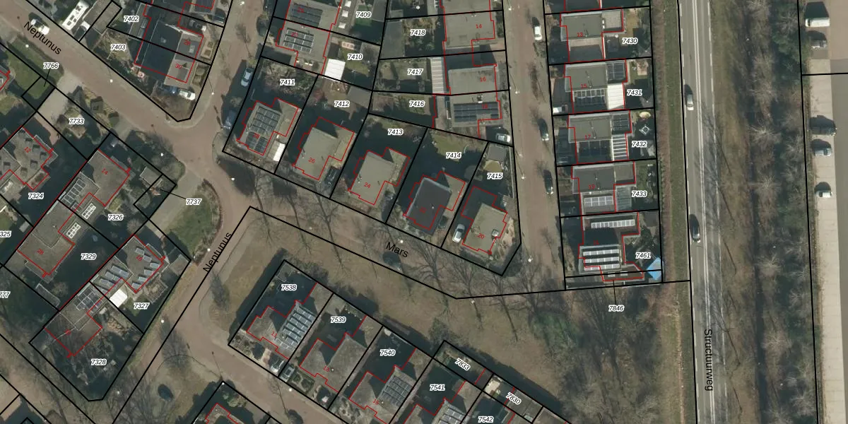 Het perceel waarop Mars 22 staat heeft een oppervlakte van 378 m². Dit is een groot perceel. De perceeloppervlakte wordt geregistreerd door het Kadaster. Gedetailleerde informatie over de maten van dit perceel kunt u vinden in het rapport Kadastrale kaart met maatvoering van Mars 22.