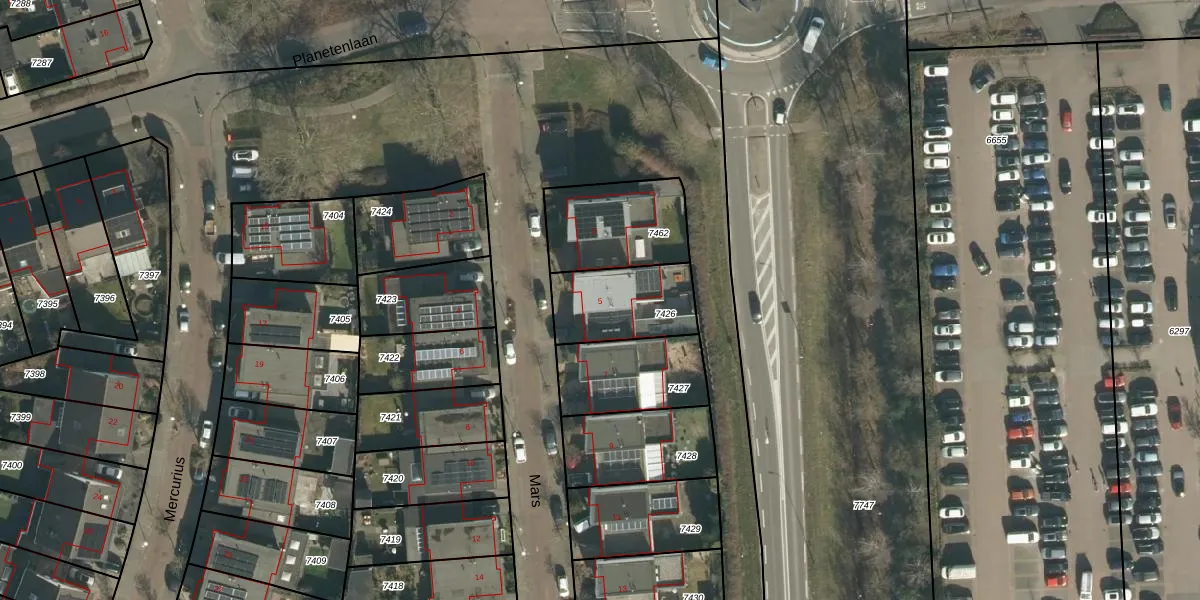 Het perceel waarop Mars 5 staat heeft een oppervlakte van 284 m². Dit is een middelgroot perceel. De perceeloppervlakte wordt geregistreerd door het Kadaster. Gedetailleerde informatie over de maten van dit perceel kunt u vinden in het rapport Kadastrale kaart met maatvoering van Mars 5.