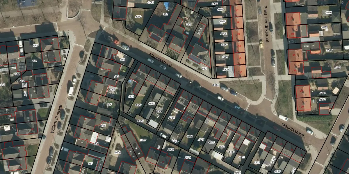 Het perceel waarop Mauritsstraat 7 staat heeft een oppervlakte van 191 m². Dit is een middelgroot perceel. De perceeloppervlakte wordt geregistreerd door het Kadaster. Gedetailleerde informatie over de maten van dit perceel kunt u vinden in het rapport Kadastrale kaart met maatvoering van Mauritsstraat 7.