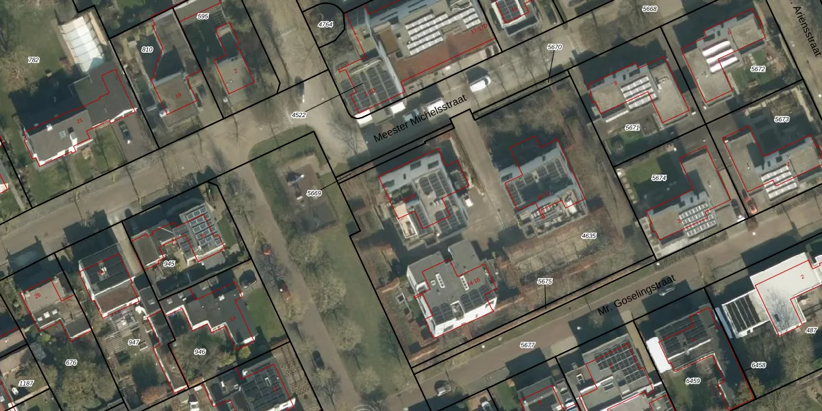 Het perceel waarop Meester Michelsstraat 18 staat heeft een oppervlakte van 3122 m². Dit is een zeer groot perceel. De perceeloppervlakte wordt geregistreerd door het Kadaster. Gedetailleerde informatie over de maten van dit perceel kunt u vinden in het rapport Kadastrale kaart met maatvoering van Meester Michelsstraat 18.