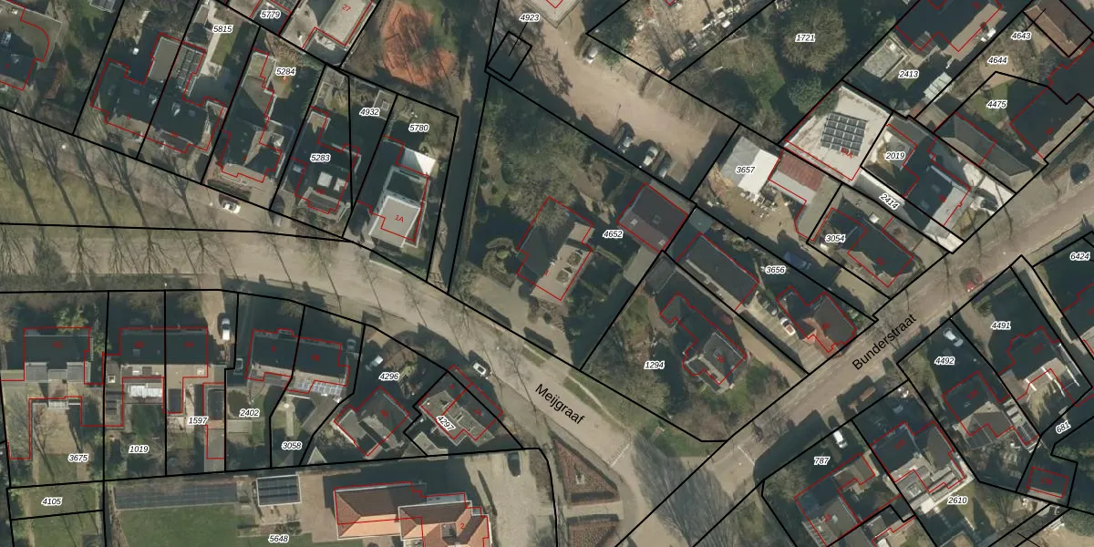 Het perceel waarop Meijgraaf 1 staat heeft een oppervlakte van 1365 m². Dit is een zeer groot perceel. De perceeloppervlakte wordt geregistreerd door het Kadaster. Gedetailleerde informatie over de maten van dit perceel kunt u vinden in het rapport Kadastrale kaart met maatvoering van Meijgraaf 1.