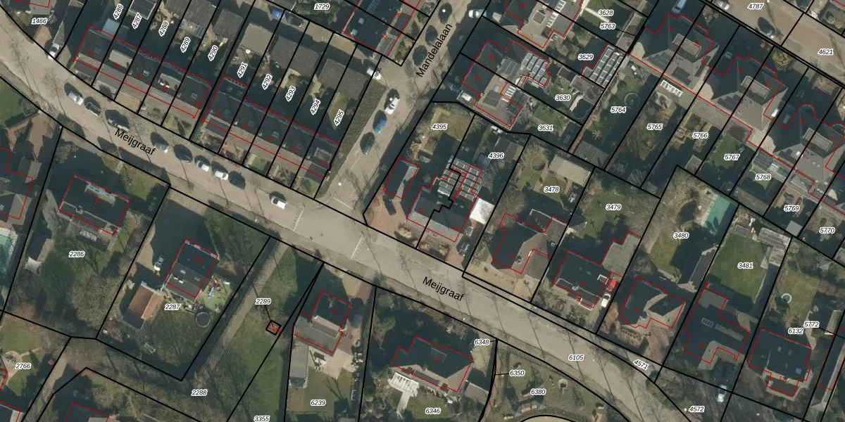 Het perceel waarop Meijgraaf 25 staat heeft een oppervlakte van 463 m². Dit is een groot perceel. De perceeloppervlakte wordt geregistreerd door het Kadaster. Gedetailleerde informatie over de maten van dit perceel kunt u vinden in het rapport Kadastrale kaart met maatvoering van Meijgraaf 25.