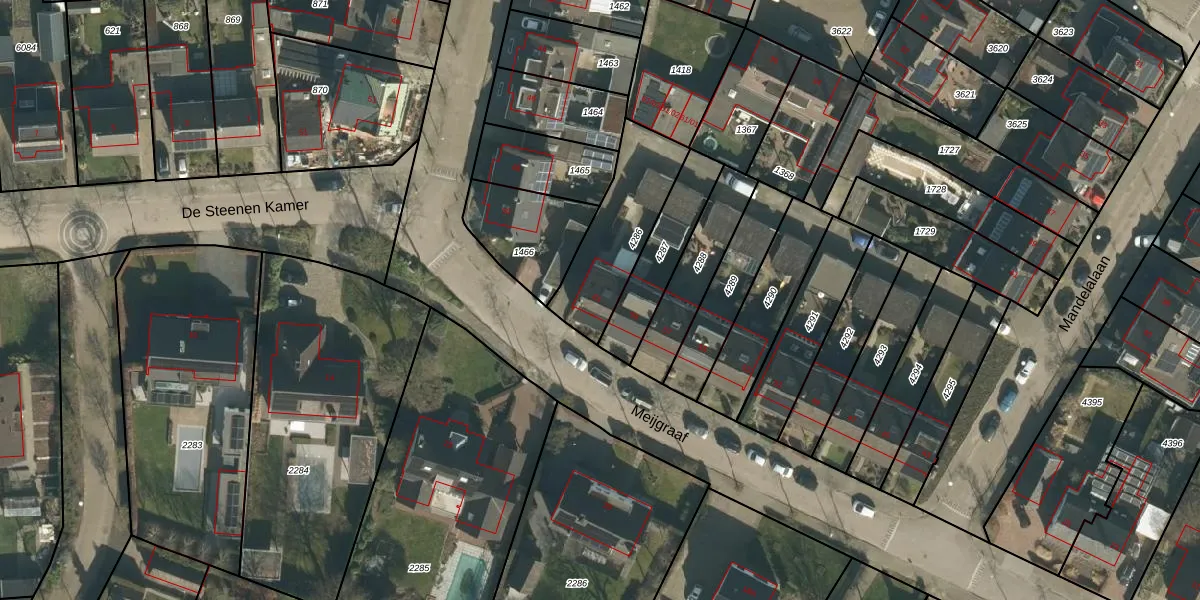 Het perceel waarop Meijgraaf 61 staat heeft een oppervlakte van 355 m². Dit is een groot perceel. De perceeloppervlakte wordt geregistreerd door het Kadaster. Gedetailleerde informatie over de maten van dit perceel kunt u vinden in het rapport Kadastrale kaart met maatvoering van Meijgraaf 61.