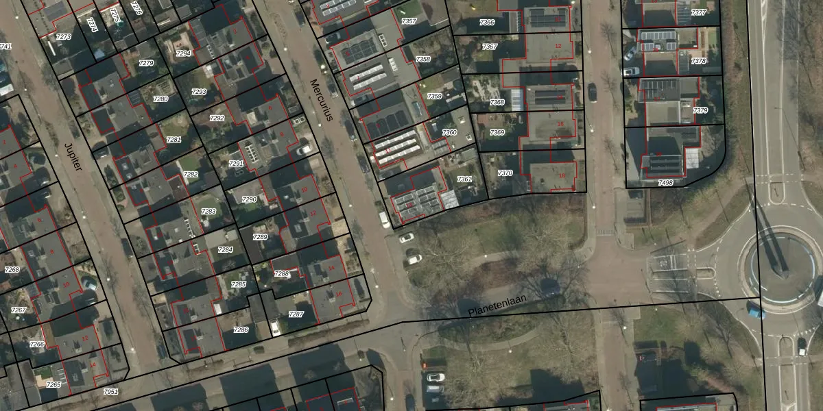 Het perceel waarop Mercurius 13 staat heeft een oppervlakte van 320 m². Dit is een groot perceel. De perceeloppervlakte wordt geregistreerd door het Kadaster. Gedetailleerde informatie over de maten van dit perceel kunt u vinden in het rapport Kadastrale kaart met maatvoering van Mercurius 13.