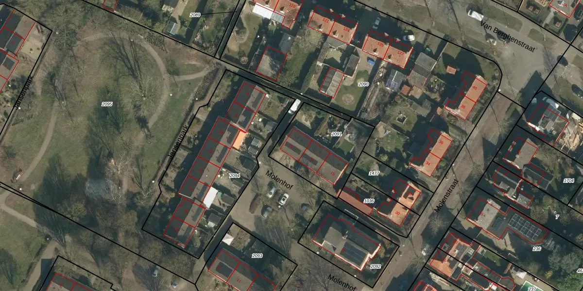 Het perceel waarop Molenhof 13 staat heeft een oppervlakte van 663 m². Dit is een groot perceel. De perceeloppervlakte wordt geregistreerd door het Kadaster. Gedetailleerde informatie over de maten van dit perceel kunt u vinden in het rapport Kadastrale kaart met maatvoering van Molenhof 13.