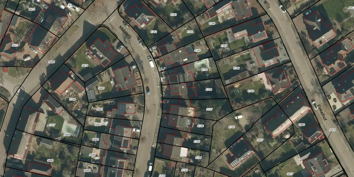 Het perceel waarop Mouterij 97 staat heeft een oppervlakte van 352 m². Dit is een groot perceel. De perceeloppervlakte wordt geregistreerd door het Kadaster. Gedetailleerde informatie over de maten van dit perceel kunt u vinden in het rapport Kadastrale kaart met maatvoering van Mouterij 97.