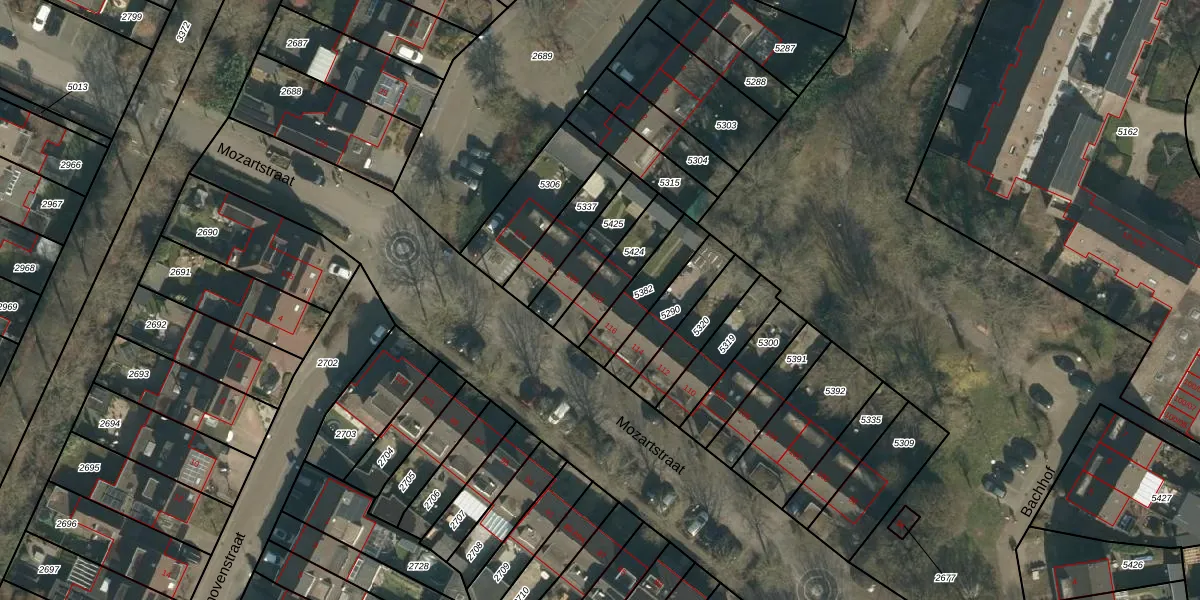 Mozartstraat 118 is gelegen op kadastraal perceel SDL00G5424. Deze kadastrale aanduiding is uniek en wordt gebruikt door het Kadaster om eigendomsrechten en andere zakelijke rechten vast te leggen. Het perceel maakt onderdeel uit van de kadastrale gemeente Schijndel.
