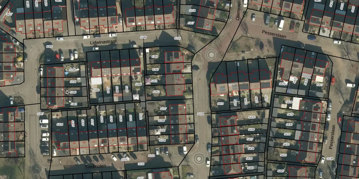 Het perceel waarop Oliemolen 21 staat heeft een oppervlakte van 227 m². Dit is een middelgroot perceel. De perceeloppervlakte wordt geregistreerd door het Kadaster. Gedetailleerde informatie over de maten van dit perceel kunt u vinden in het rapport Kadastrale kaart met maatvoering van Oliemolen 21.