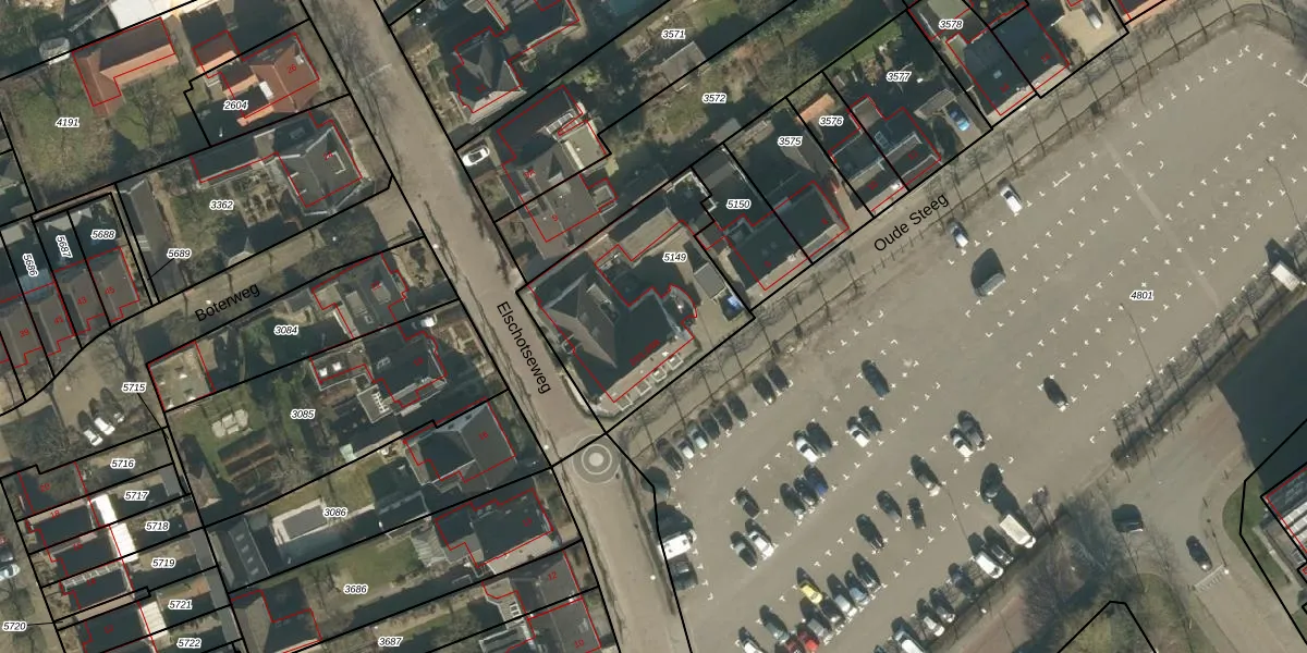 Het perceel waarop Oude Steeg 2-06 staat heeft een oppervlakte van 737 m². Dit is een groot perceel. De perceeloppervlakte wordt geregistreerd door het Kadaster. Gedetailleerde informatie over de maten van dit perceel kunt u vinden in het rapport Kadastrale kaart met maatvoering van Oude Steeg 2-06.