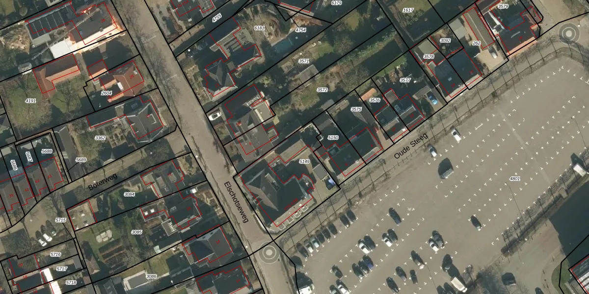 Het perceel waarop Oude Steeg 2-08 staat heeft een oppervlakte van 737 m². Dit is een groot perceel. De perceeloppervlakte wordt geregistreerd door het Kadaster. Gedetailleerde informatie over de maten van dit perceel kunt u vinden in het rapport Kadastrale kaart met maatvoering van Oude Steeg 2-08.