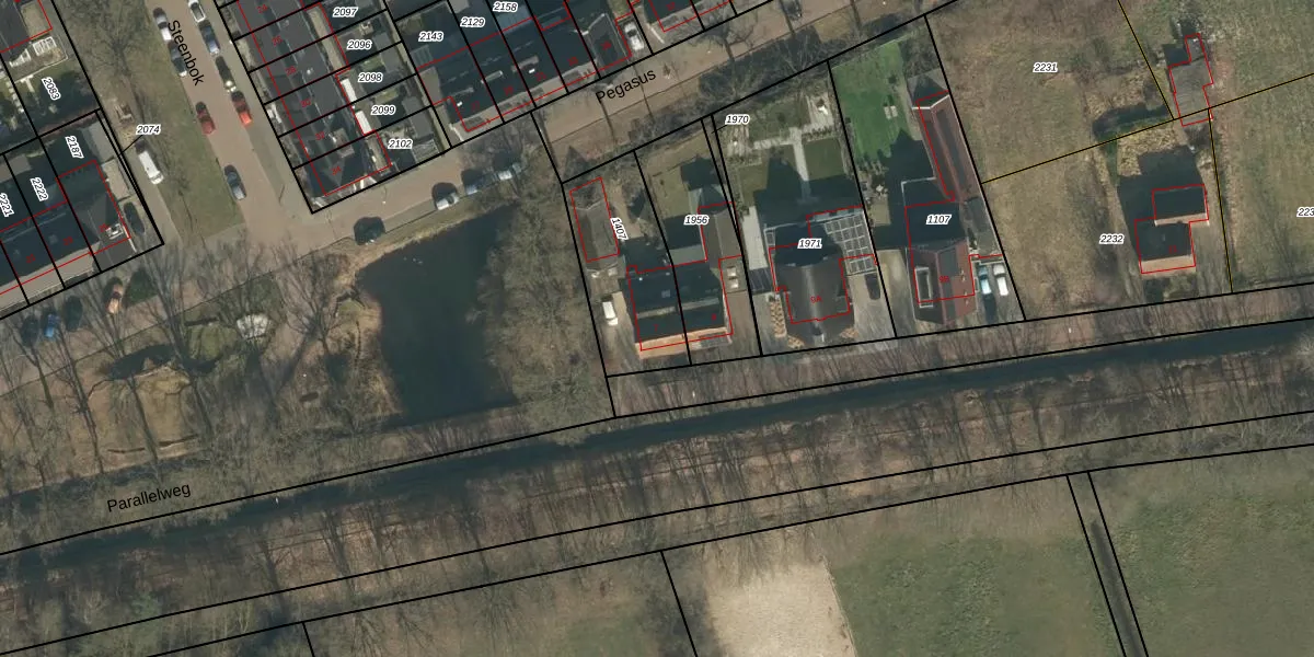 Het perceel waarop Parallelweg 7 staat heeft een oppervlakte van 448 m². Dit is een groot perceel. De perceeloppervlakte wordt geregistreerd door het Kadaster. Gedetailleerde informatie over de maten van dit perceel kunt u vinden in het rapport Kadastrale kaart met maatvoering van Parallelweg 7.