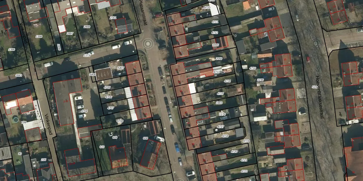 Plataanstraat 16 is gelegen op kadastraal perceel SDL00G4714. Deze kadastrale aanduiding is uniek en wordt gebruikt door het Kadaster om eigendomsrechten en andere zakelijke rechten vast te leggen. Het perceel maakt onderdeel uit van de kadastrale gemeente Schijndel.