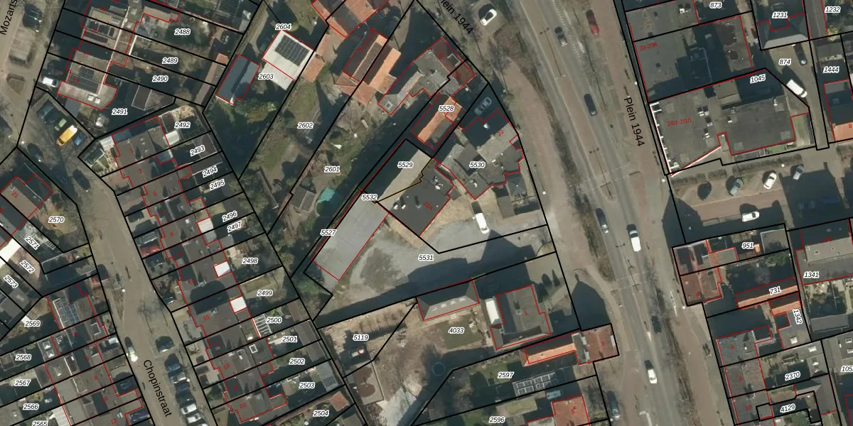 Het perceel waarop Plein 1944 22-A staat heeft een oppervlakte van 800 m². Dit is een groot perceel. De perceeloppervlakte wordt geregistreerd door het Kadaster. Gedetailleerde informatie over de maten van dit perceel kunt u vinden in het rapport Kadastrale kaart met maatvoering van Plein 1944 22-A.