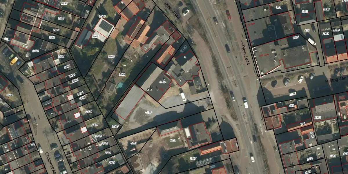 Het perceel waarop Plein 1944 22-21 staat heeft een oppervlakte van 915 m². Dit is een groot perceel. De perceeloppervlakte wordt geregistreerd door het Kadaster. Gedetailleerde informatie over de maten van dit perceel kunt u vinden in het rapport Kadastrale kaart met maatvoering van Plein 1944 22-21.