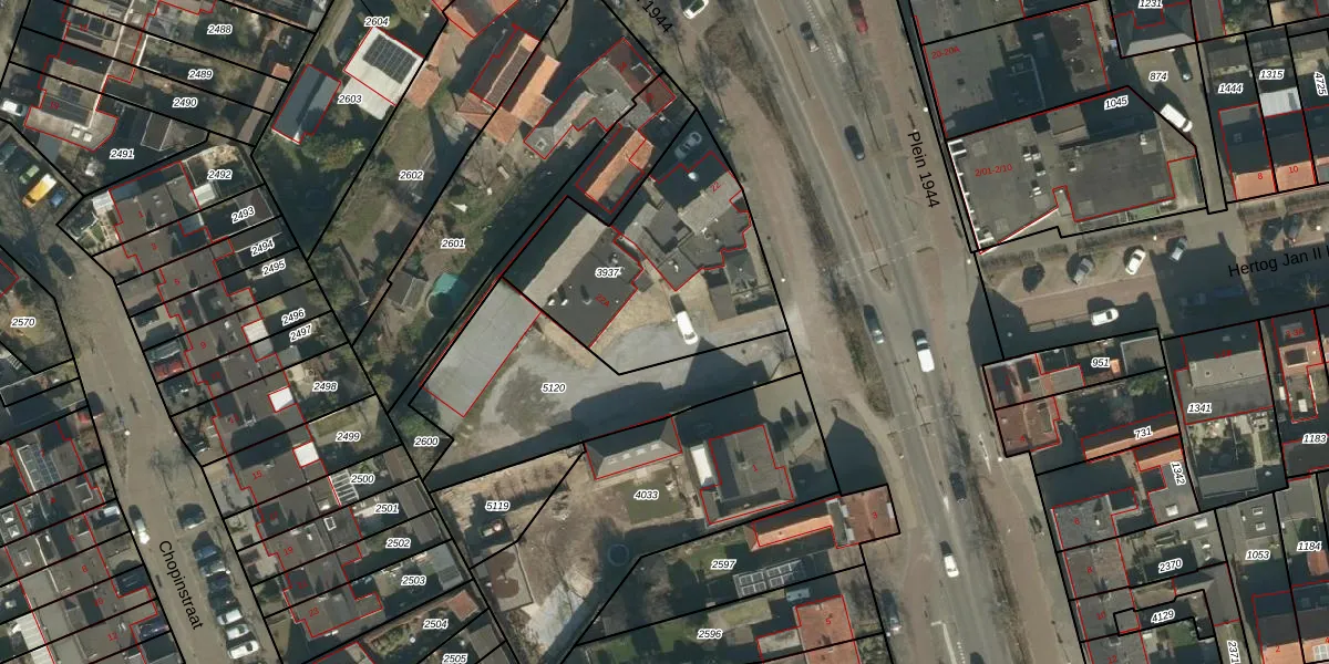 Het perceel waarop Plein 1944 22-22 staat heeft een oppervlakte van 915 m². Dit is een groot perceel. De perceeloppervlakte wordt geregistreerd door het Kadaster. Gedetailleerde informatie over de maten van dit perceel kunt u vinden in het rapport Kadastrale kaart met maatvoering van Plein 1944 22-22.