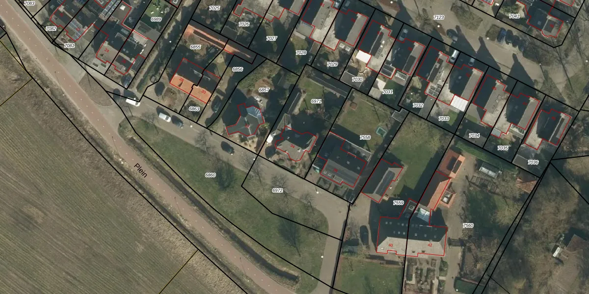 Het perceel waarop Plein 34 staat heeft een oppervlakte van 615 m². Dit is een groot perceel. De perceeloppervlakte wordt geregistreerd door het Kadaster. Gedetailleerde informatie over de maten van dit perceel kunt u vinden in het rapport Kadastrale kaart met maatvoering van Plein 34.